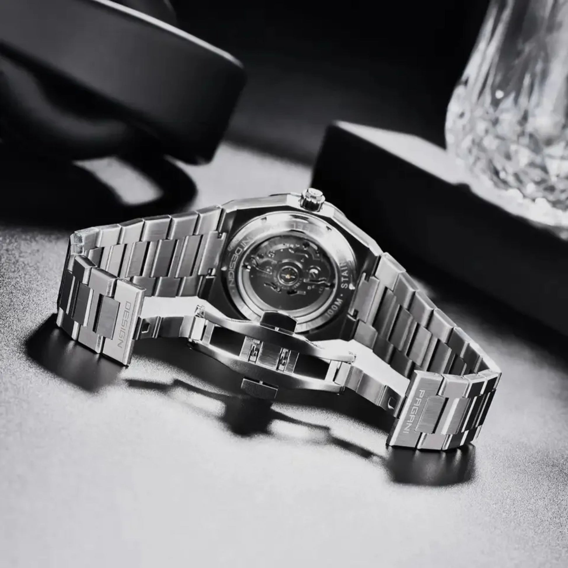 El PAGANI DESIGN PD-1673 es más que un reloj: es una declaración. Inspirado en el icónico Royal Oak, combina una estética audaz con una sólida construcción en acero inoxidable. Su bisel octogonal y esfera texturizada reflejan el gusto por los detalles y la herencia relojera, ideal para quienes buscan destacar con clase.