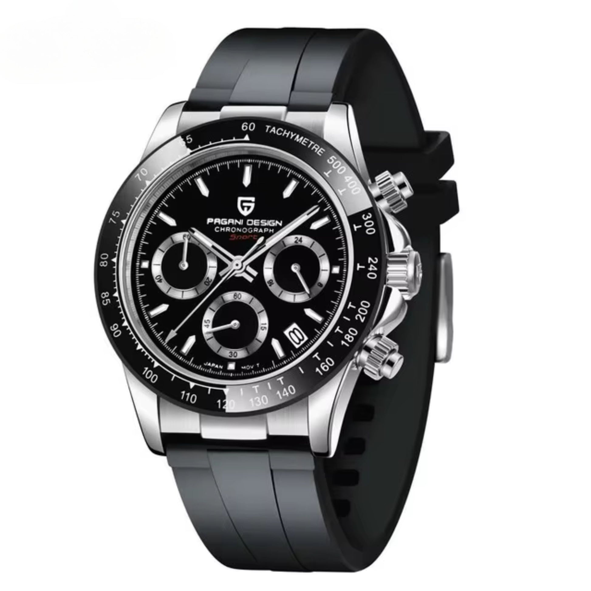 Reloj Cuarzo PAGANI DESIGN DAYTONA Caucho, PD-1664 - Plata Negro