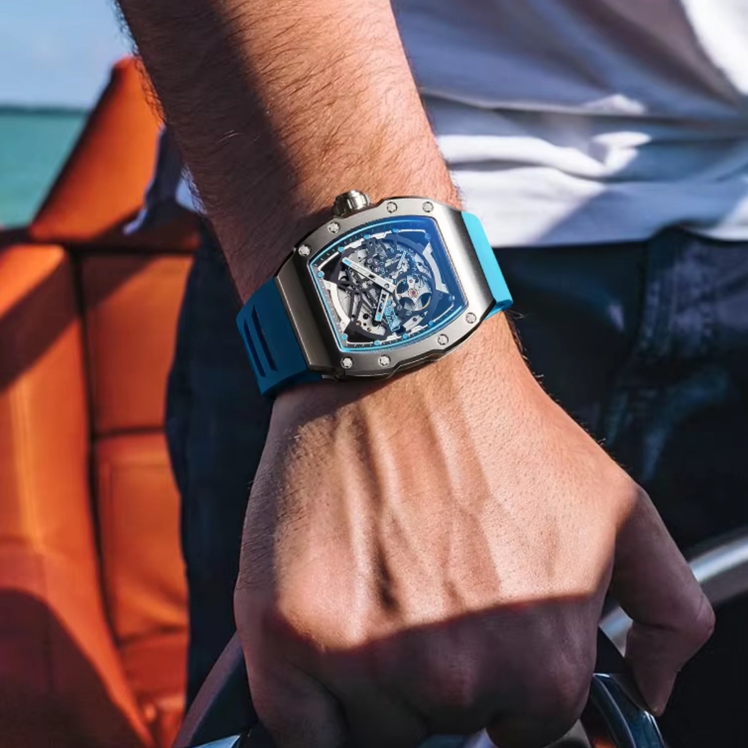 El diseño hollow-out permite observar el funcionamiento interno, recordando que el tiempo también es arte mecánico.